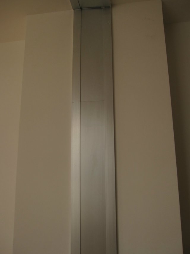 此工程位于上海楊浦區(qū)復(fù)旦大學(xué)附屬中小學(xué),內(nèi)墻頂棚部位選用卡鎖型變形縫,排除了縫口不直的問(wèn)題,效果如下圖