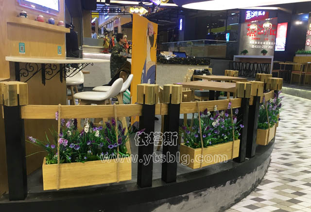 ? ? 這是一組步步高商場(chǎng)某家甜品店的花箱,用麻繩懸掛著,原木色調(diào)組合浪漫的薰衣草仿真花,給人清新。花箱尺寸為600*200*200,沿著欄桿進(jìn)行懸掛裝飾,既是欄桿也是花箱不但節(jié)省空間還很美觀,原木色充滿大自然的氣息,麻繩充滿復(fù)古的味道,紫色薰衣草代表著浪漫,清新自然,簡單的裝飾沒有任何繁冗,整體洋溢著古樸的味道,這種簡約無疑都是現(xiàn)代年輕人所喜歡的。