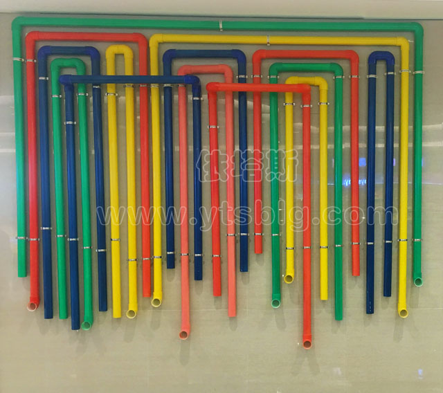 ? ? 這組裝飾讓原本單調(diào)的墻面不再孤單,打破傳統(tǒng)的美陳裝飾品,PVC水管充滿了現(xiàn)代工業(yè)風(fēng),管口處經(jīng)過細(xì)心打磨不傷手,安裝穩(wěn)固,可以跟兒童們形成近距離的互動,給商場帶來流量,是兒童區(qū)域美陳裝飾的新發(fā)現(xiàn)。