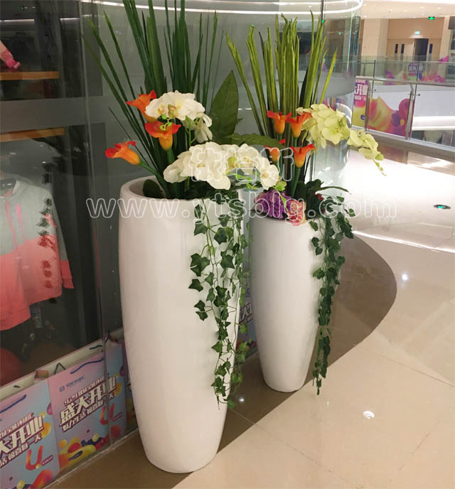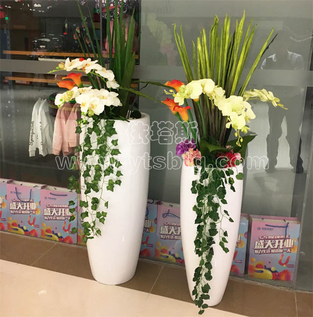? ? 因此2018年的開業(yè)美陳寶能選擇了玻璃鋼花盆來進(jìn)行裝飾,這組花盆的規(guī)格大小分別為φ400*高1050mm、φ300*高800mm。一高一低進(jìn)行組合擺放,再搭配顏色艷麗的馬蹄蓮和優(yōu)雅的蝴蝶蘭立刻成為商場(chǎng)的亮點(diǎn)。圓柱外形,是玻璃鋼花盆中非常經(jīng)典的款式,擺放在過道因?yàn)闆]有邊角非常安全的選擇。