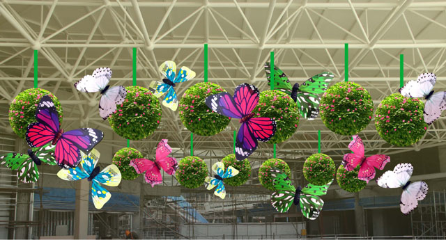 ? ? ? ? 以體驗式購物和滿足消費者情感訴求來安排購物中心美陳裝飾,已成為近年來各大商場的策劃方向。