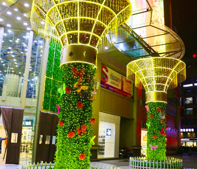 此次“米蘭花街”為主題的綠色美陳裝飾方案,結(jié)合萬象更新的歐式元素,把金輪新天地打造成具有米蘭風情,迎接新年新氣象的體驗動感購物場所。絢麗多彩的時尚霓虹燈點亮商業(yè)街道,徜徉其中,感受其所帶來的異國情調(diào)。