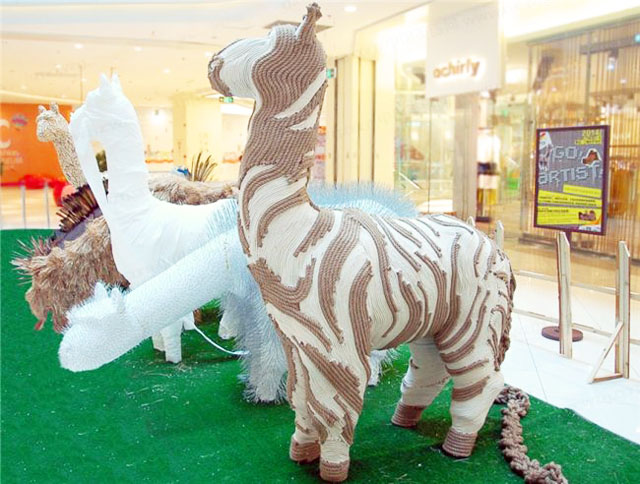 ? ? 然而,這些由泡沫塑料、樹脂材料、玻璃鋼、石膏等材料迅速搭建起來的“作品”,生命期非常短暫,短則幾天,長也不過數(shù)月。由于可回收利用的價值很低,大量的美陳材料被焚燒或丟棄。雖然對于搭建方來說,材料的成本已經(jīng)回收,但對環(huán)境造成的污染和傷害仍然不可小覷。