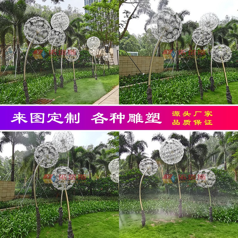 ? ? ?在城市的公園,或是在靜謐的庭園一隅,你或許曾與它不期而遇——一株由金屬鍛造的蒲公英。它并非生長(zhǎng)于泥土,而是植根于現(xiàn)代工業(yè)的精密與冷峻之上。無(wú)數(shù)不銹鋼鏡面打磨的種子,被纖細(xì)而堅(jiān)韌的金屬莖稈托舉著,匯聚成一朵完美的、即將飛散的球形。這不再是記憶中那個(gè)一吹即散、柔弱不堪的童年意象,而是一件融合了自然靈感與工業(yè)美學(xué)的雕塑作品,一種凝固于時(shí)間之外的永恒姿態(tài)。